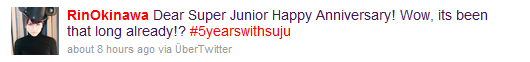Another person congratulated Super Junior on their 5th Anniversary ^^Source: @RinOkinawa